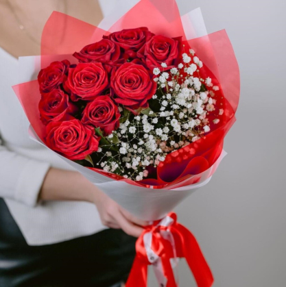 Букет из красных роз и гипсофилы | Купить в Вулвергемптоне